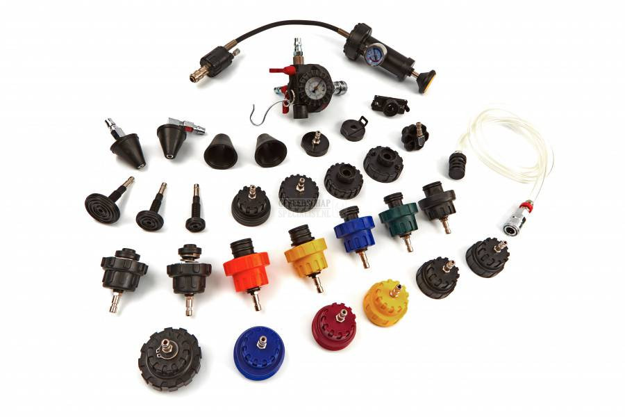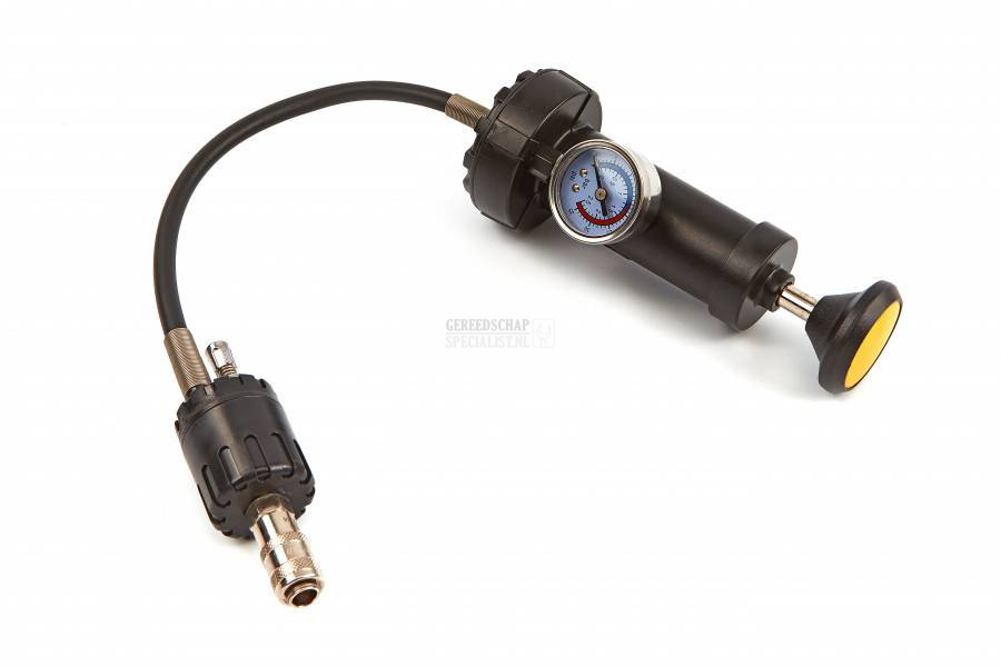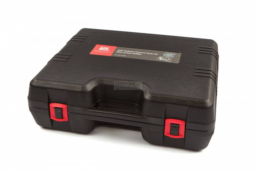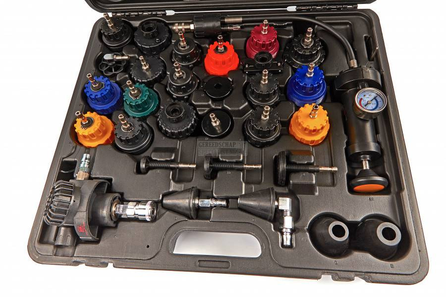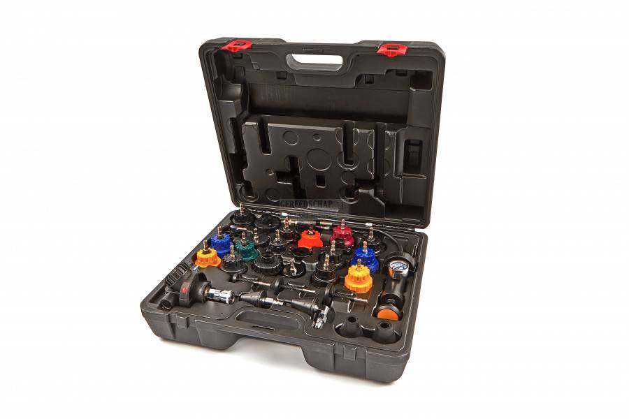 Je controleert de druk in het koelsysteem van de motor gemakkelijk met deze AOK set. De druk in de motor van een voertuig is belangrijk om veilig en energiezuinig te rijden. In deze set zitten een drukmeter, handpomp en testadapters. Essentiële hulpmiddelen om de druk van het koelsysteem van een motor te controleren.