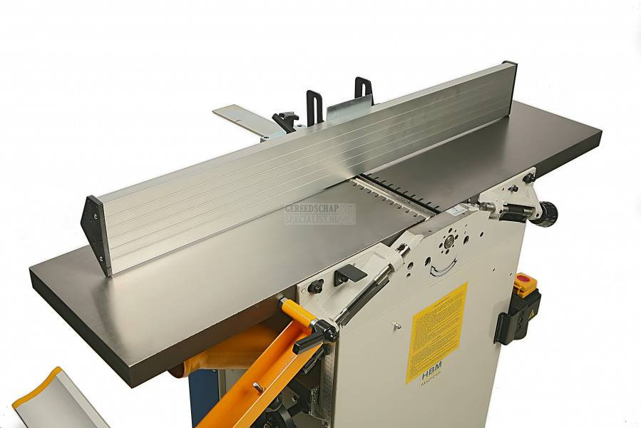 Deze 400V Vlak- en Vandiktebank van HBM sluit je met een flexibele slang aan op een zaagstofafzuigsysteem voor afvoer van de vrijkomende spaanders en houtstof. Hierdoor blijft de werkplek schoon en overzichtelijk. Regelmatig onderhoud verlengt de levensduur van machines. Het advies is deze HBM vlak- en vandiktebank minimaal 1 x per week goed schoon te maken, inclusief de aandrukrollen en lagerhuizen. Het oppervlak van de tafel kun je inspuiten met glijpasta voor een goede geleiding van het werkstuk.