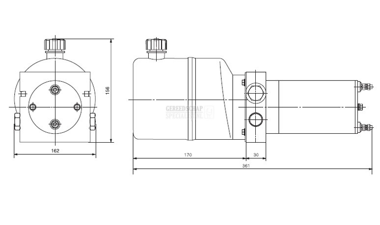 Hydrauliek pomp / hydraulische pomp Deze pomp kan 2 richtingen op draaien dmv het draaien van de polariteit van de elektromotor.