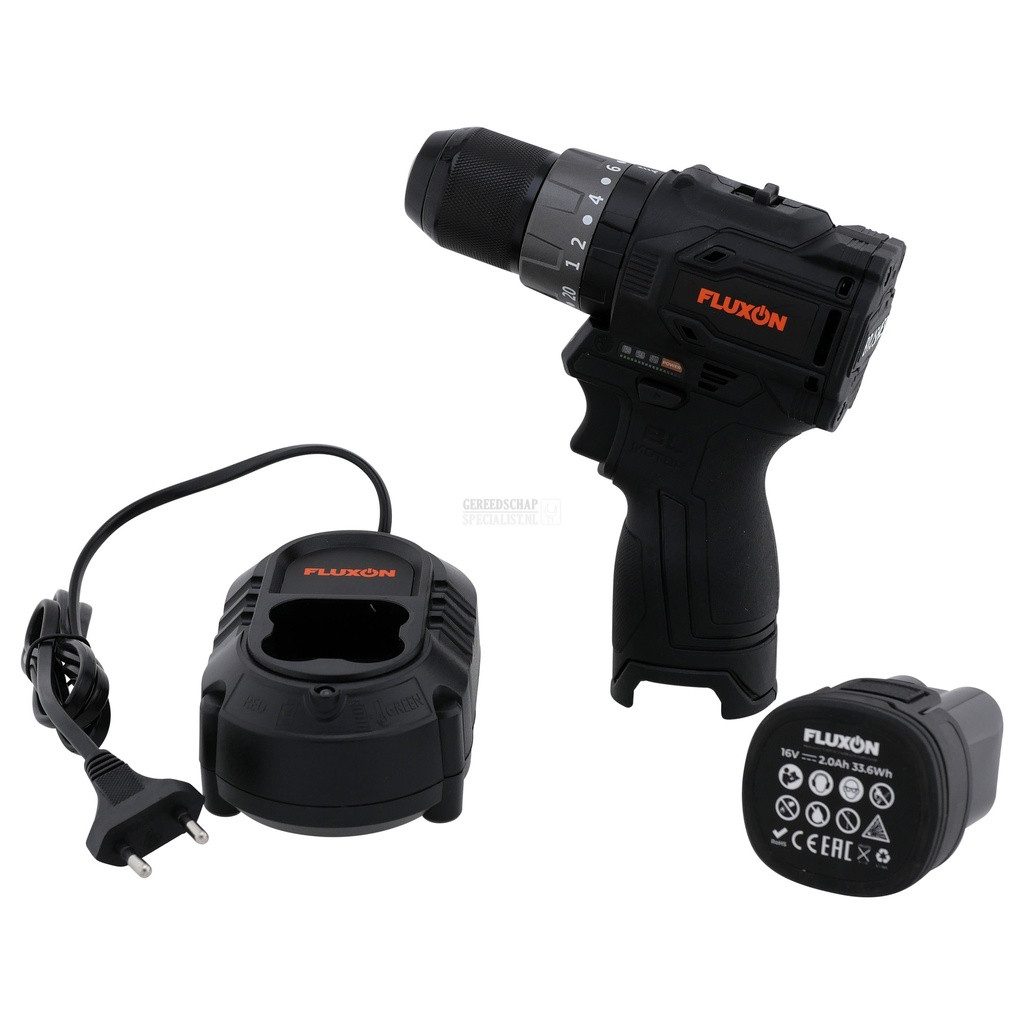 De Fluxon 16V klopboormachine op accu combineert compactheid met prestaties, waardoor het een ideaal gereedschap is voor uiteenlopende taken. boren, schroeven en zelfs boren in steen dankzij de klopstand. Aangedreven door een 16V 2Ah lithium-ion batterij levert hij een constant vermogen voor professionele en doe-het-zelf toepassingen.