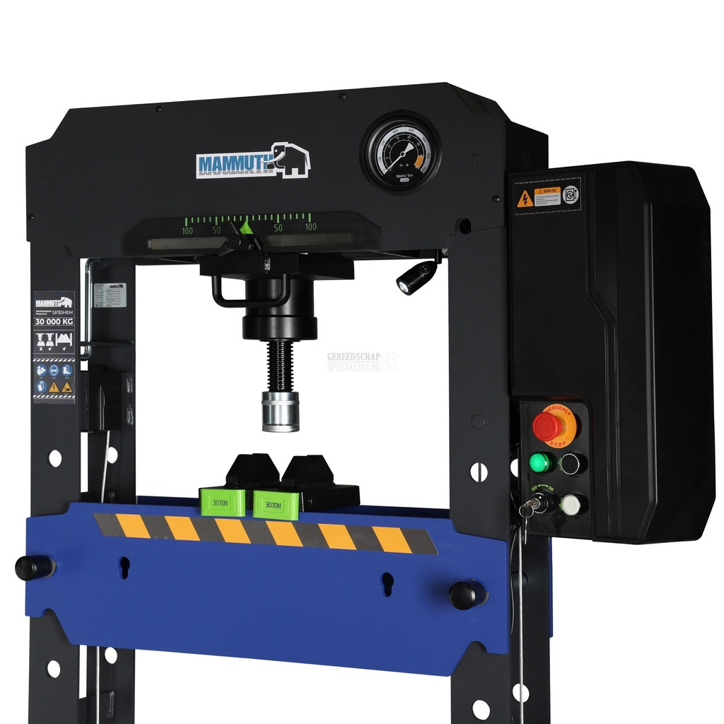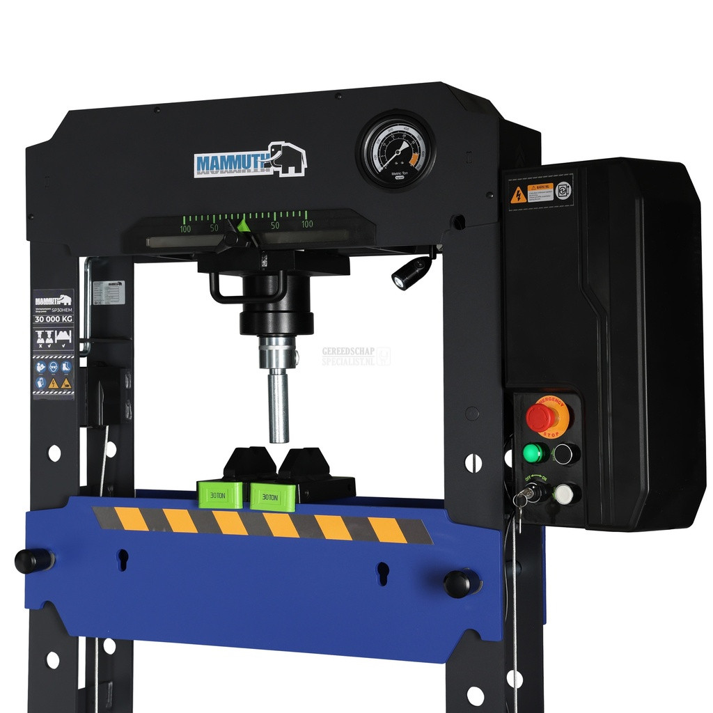 Deze 30 tons hydraulische pers van Mammuth is betrouwbaar en veelzijdig, geschikt voor professioneel gebruik in werkplaatsen, garages en industriële omgevingen.