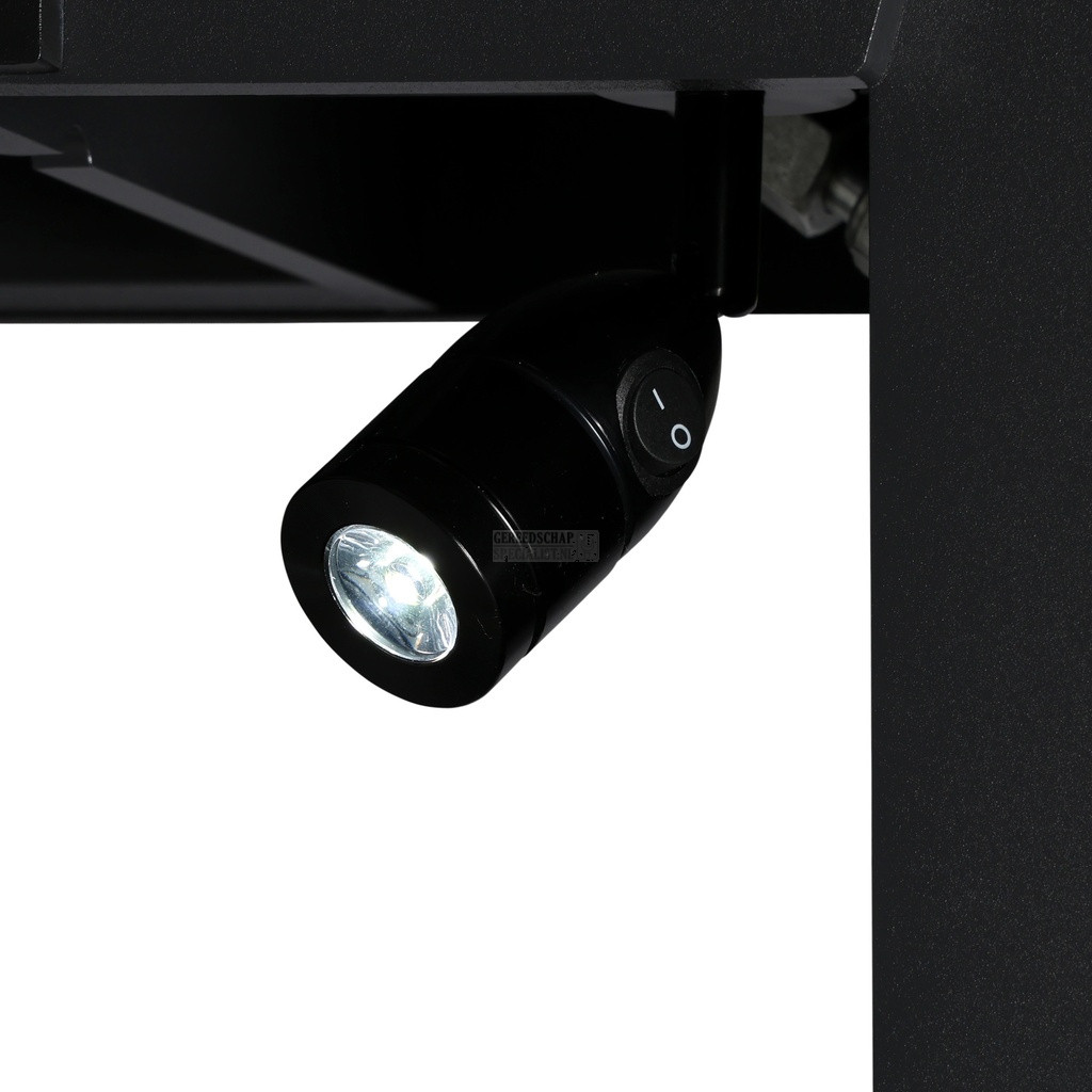 Zijwaarts verplaatsbaar en uit te draaien via de schroefspindel voor precieze plaatsing.