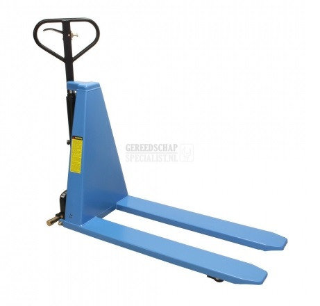 Deze hoogheffende palletwagen met een capaciteit van 1000 Kg wordt geleverd met 12 maanden fabrieksgarantie.