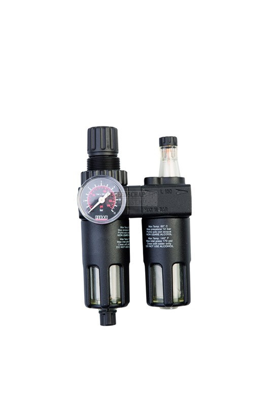 RODAC luchtverzorgingsunit 1/4" RASG1000-14 is een olienevelaar, waterafscheider en drukregelaar van 0 tot 12 bar in één. Deze luchtverzorgingsunit is speciaal ontworpen voor gebruik in auospuiterijen en werkplaatsen van automobielbedrijven.