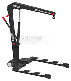 Deze inklapbare, hydraulische werkplaatskraan van RODAC met een capaciteit van 2 ton is omisbaar bij het (de)monteren van motorblokken maar ook ideaal voor eenvoudig en snel tillen en verplaatsen van andere zware lasten.