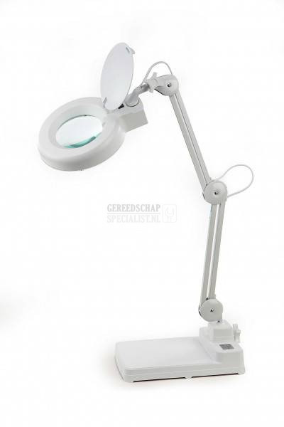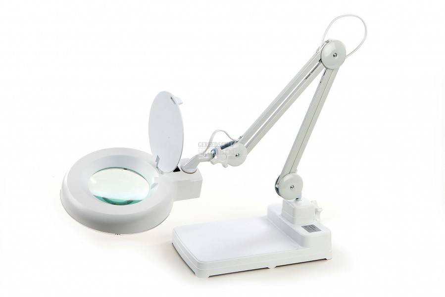 Deze verstelbare loupelamp is voorzien van een sterke LED lichtbron, zodat je altijd goed zicht op je werk hebt. De zware voet zorgt ervoor dat de lamp erg stabiel is, zodat deze niet omvalt als je bijvoorbeeld tegen de werktafel stoot. Om de loep te gebruiken klap je het kapje aan de bovenzijde van de lamp open. De drie gewrichten maken dat je de lamp in vele posities kunt plaatsen, zodat je de loep altijd dicht bij het werkstuk kunt houden.
