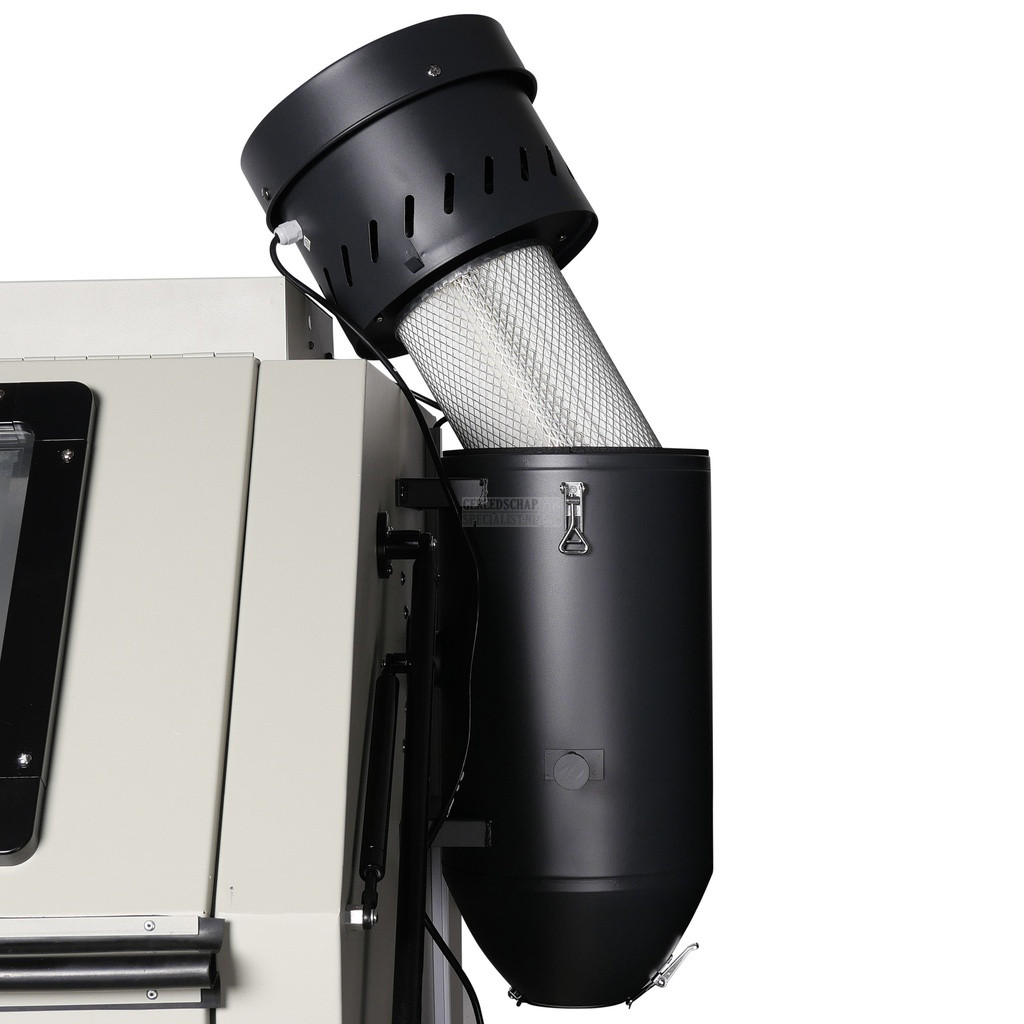 De AirPro dubbeldeurs zandstraalkast is gebouwd voor grootschalige zandstraaltaken. De ruime inhoud van 1200 liter en het dubbeldeursontwerp vereenvoudigen het hanteren van grote werkstukken, met gemakkelijke toegang, zelfs met een vorkheftruck. Het lichtgrijze interieur, de krachtige verlichting en het efficiënte stofafzuigsysteem minimaliseren schaduwen en zorgen voor helder zicht voor nauwkeurig zandstralen.